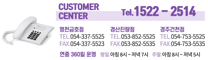 경주건천점 주소 : 경주시 건천읍 내서로 1088-9 | Tel : 054-753-5525 | H.P : 010-8563-5535 | Fax : 054-753-5535
