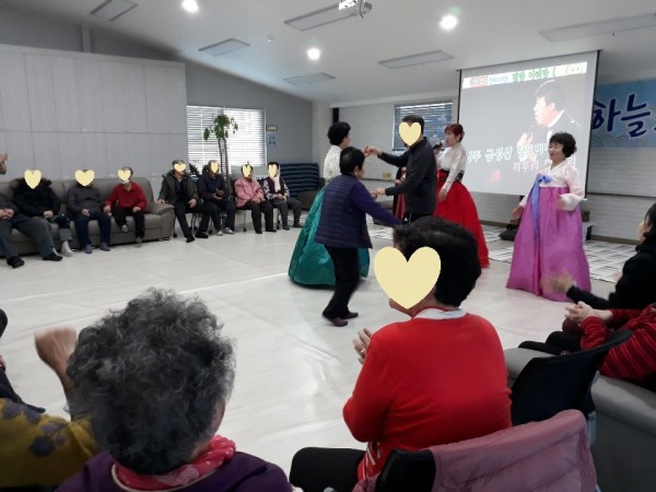 2019년 새해를 맞이하여 어르신들을 모시고 민요, 가요 가수분들을 초청하여 즐거운 시간을 보냈답니다.