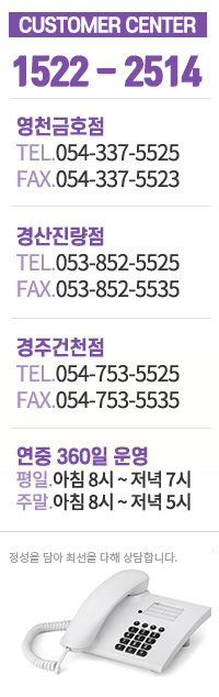 경주건천점 주소 : 경주시 건천읍 내서로 1088-9 | Tel : 054-753-5525 | H.P : 010-8563-5535 | Fax : 054-753-5535